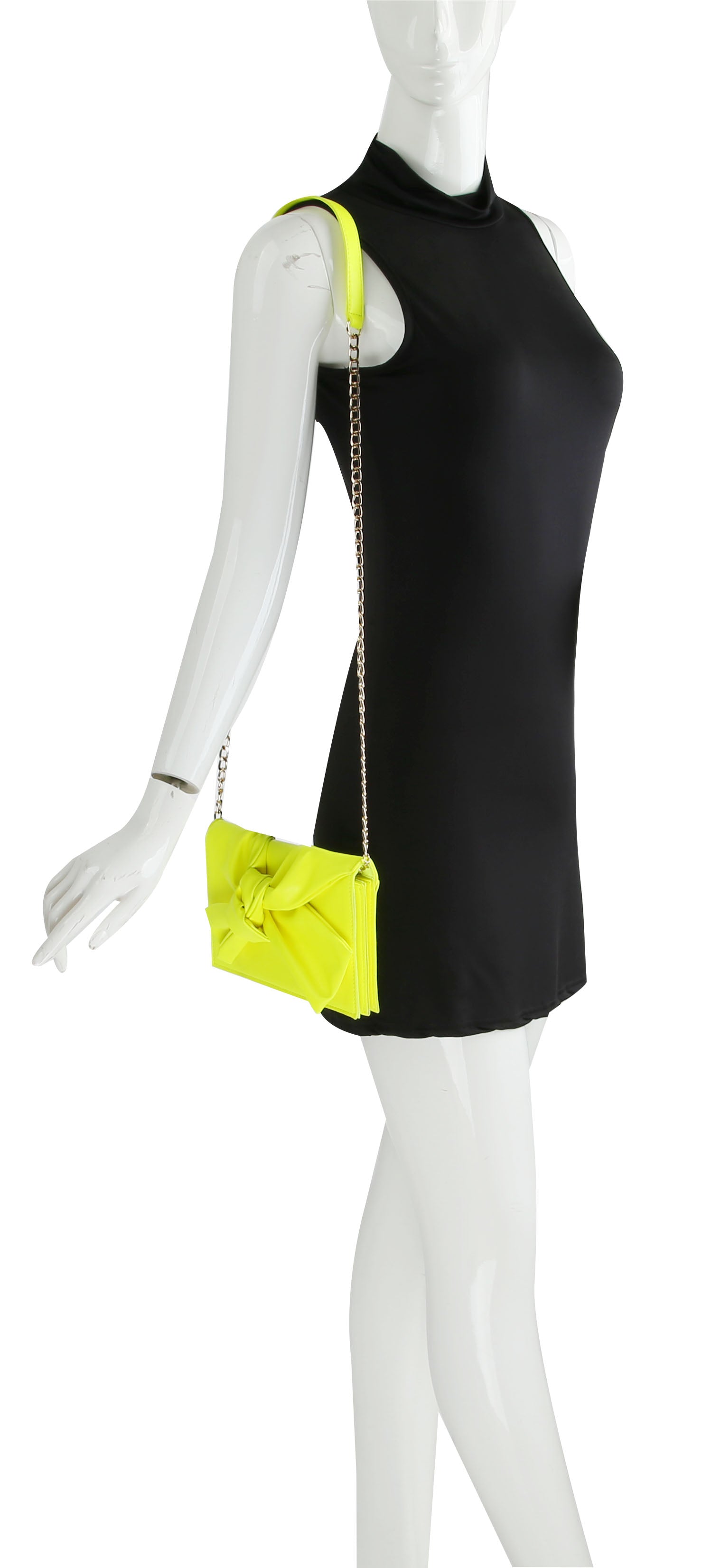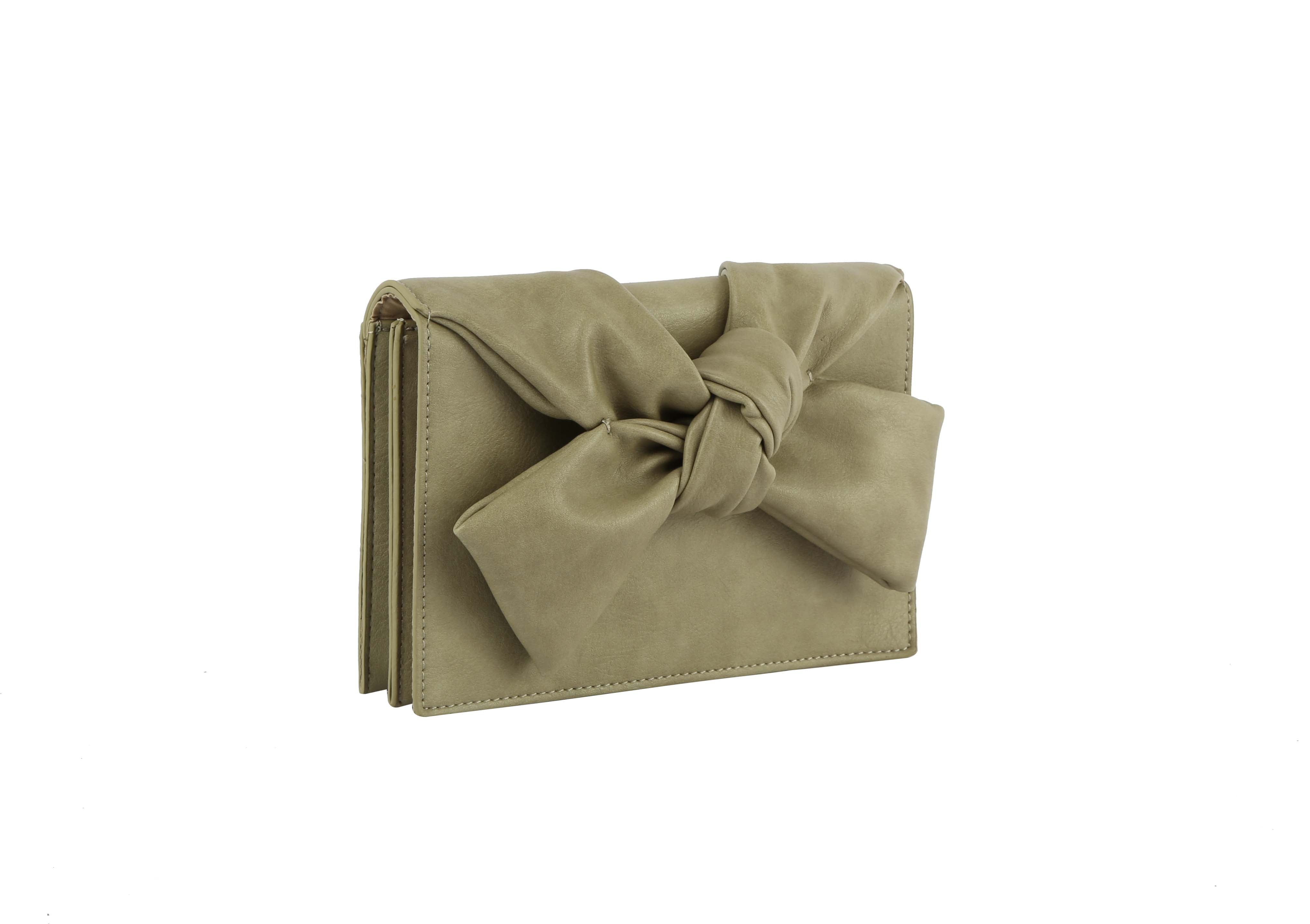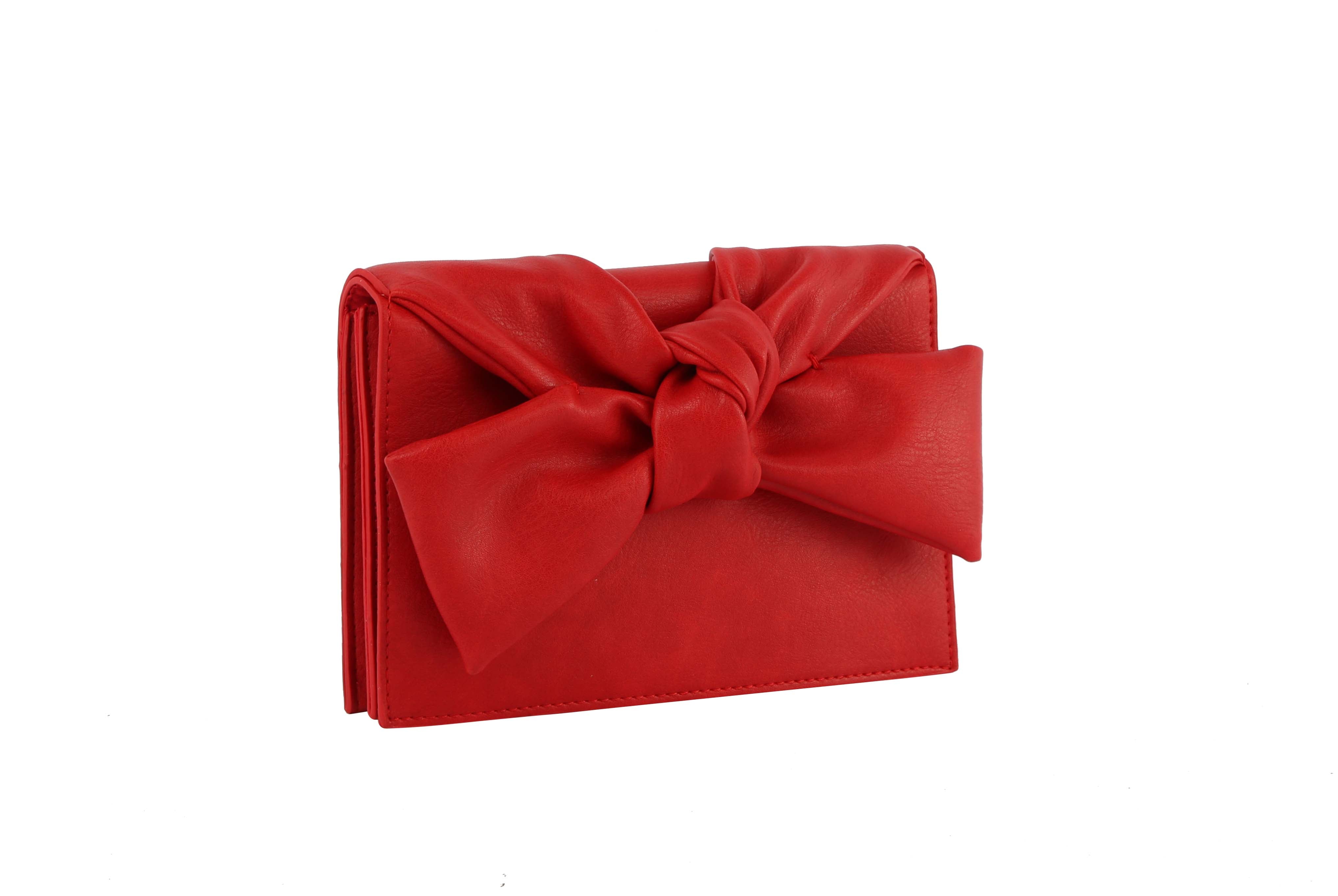 HF Evening Clutch Messenger Style With Cute Bow Tie Purse Vegan PU Leather Crossbody Shoulder Bag CL-0170