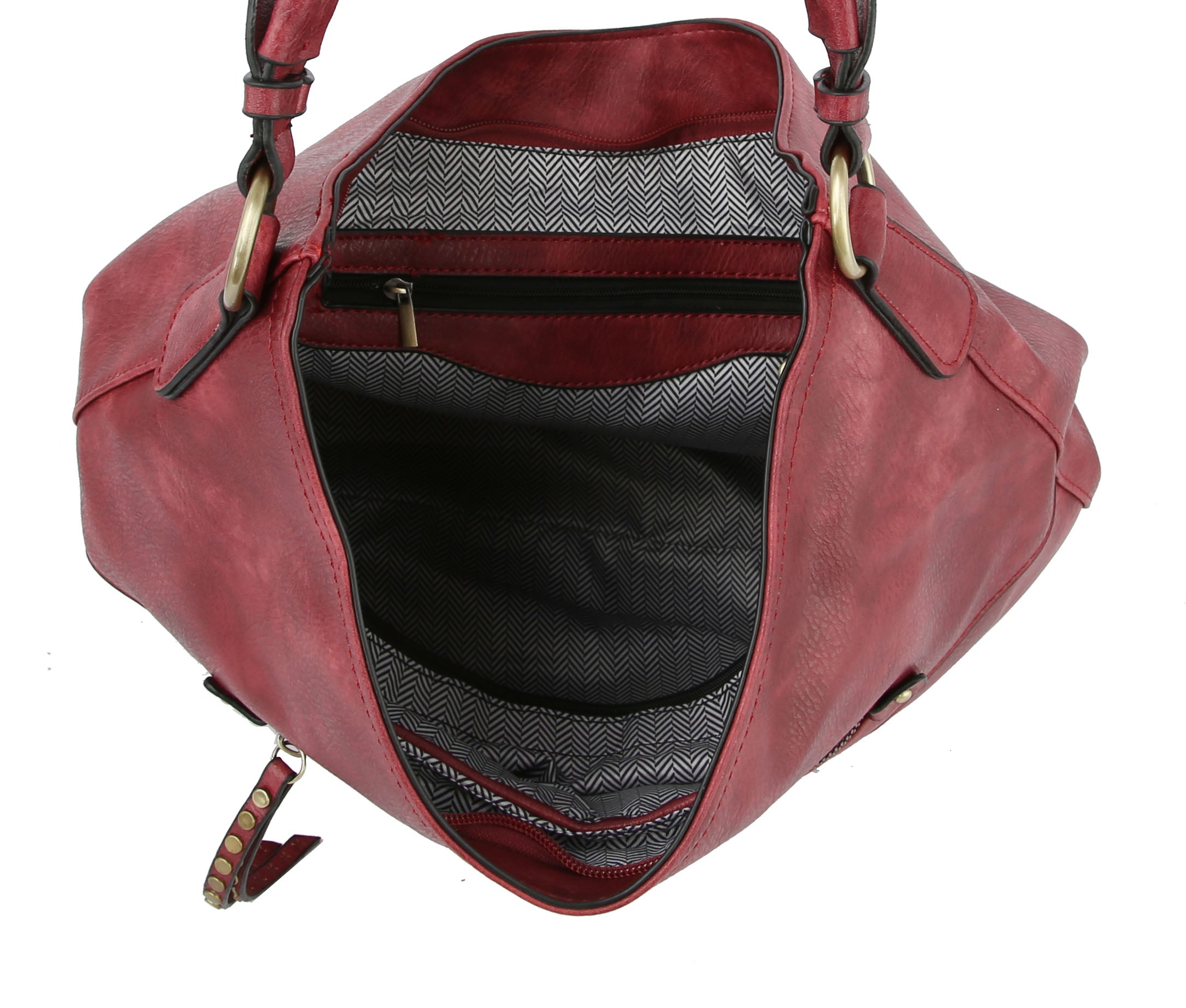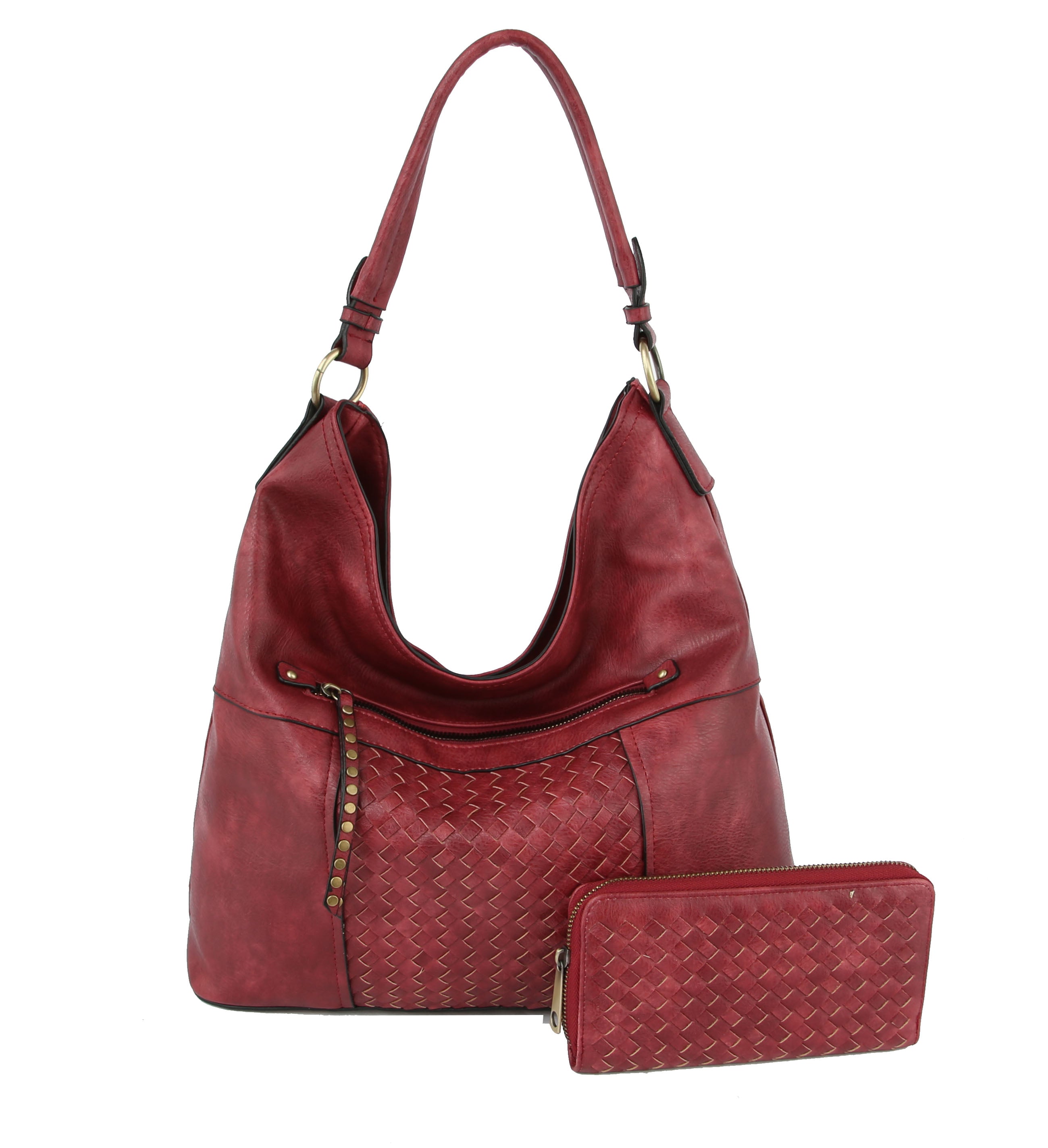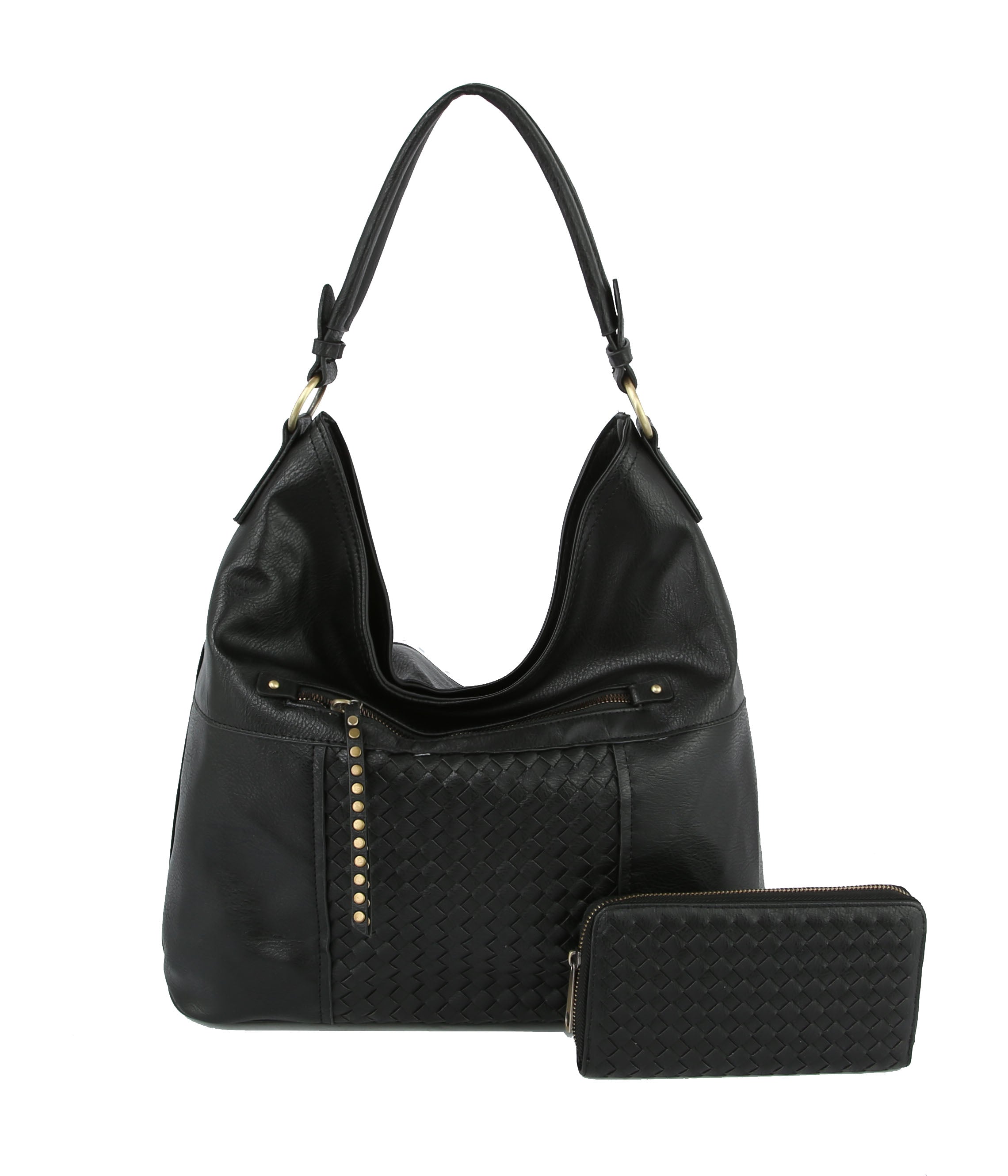 2 IN 1 HOBO, FAUX LEATHER, STITCHED HOBO , WITH WALLET, MULTIPOCKET, MULTI ZIPPER, , 14 X 5 X 13,