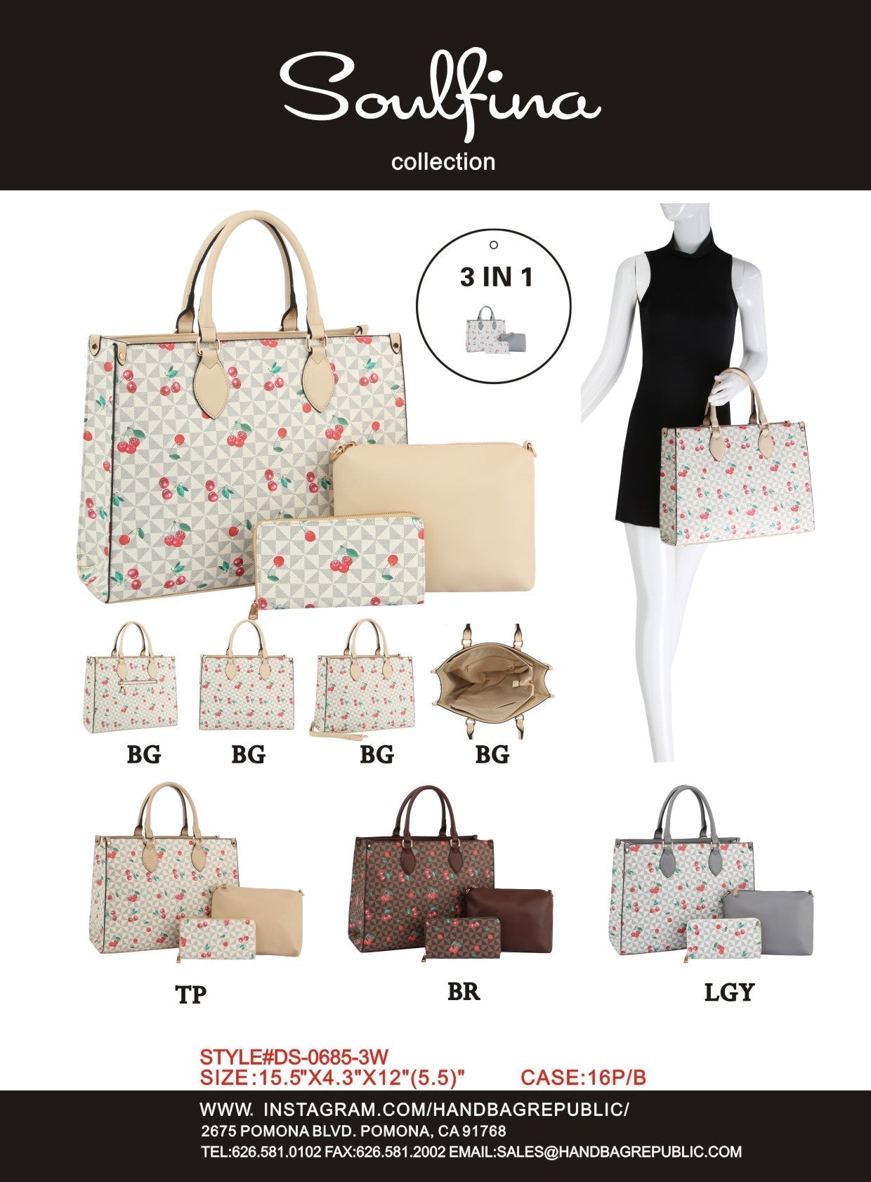 Fashion Cherry Monogram Satchel with Wallet 3-1 Set DS-0685-3W