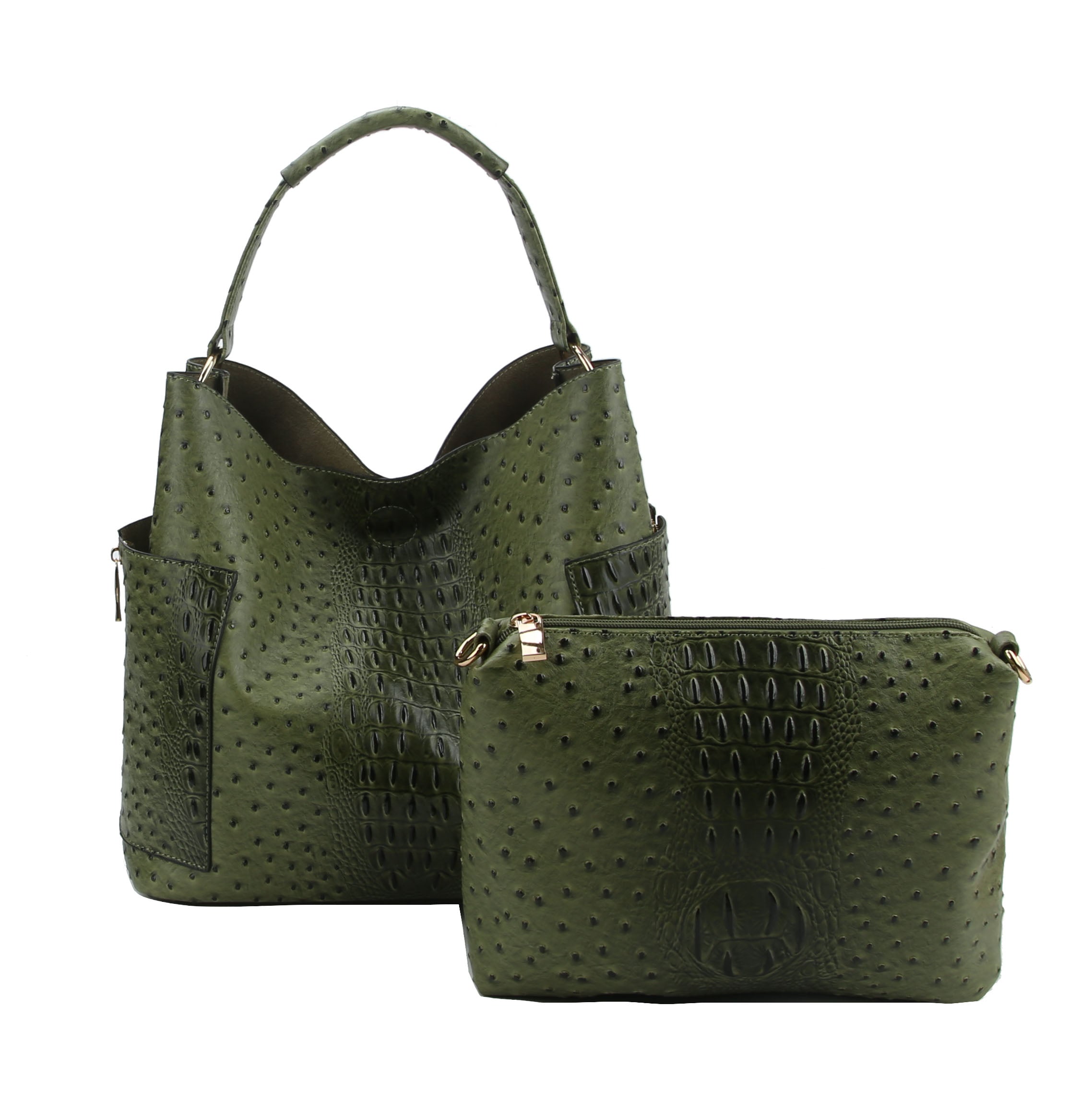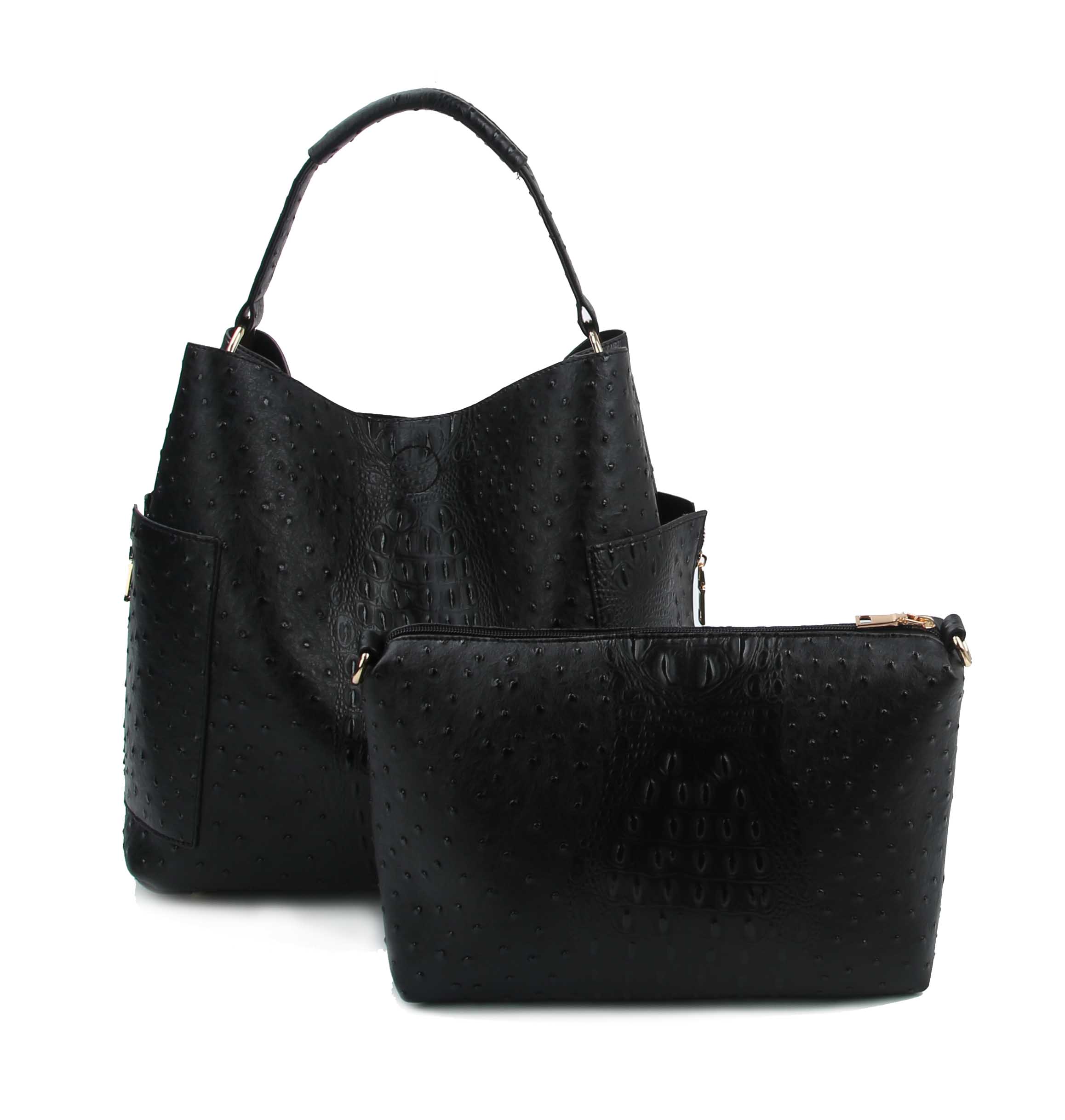 | 2 in 1, crocodile pattern Vegan Leather with polyester lining, easy for wipe clean. The liner is soft to keep stuff without abrasion. Easy to carry your office supplies convenient and professional. Size: 13.5x7.5x11(5.5) |