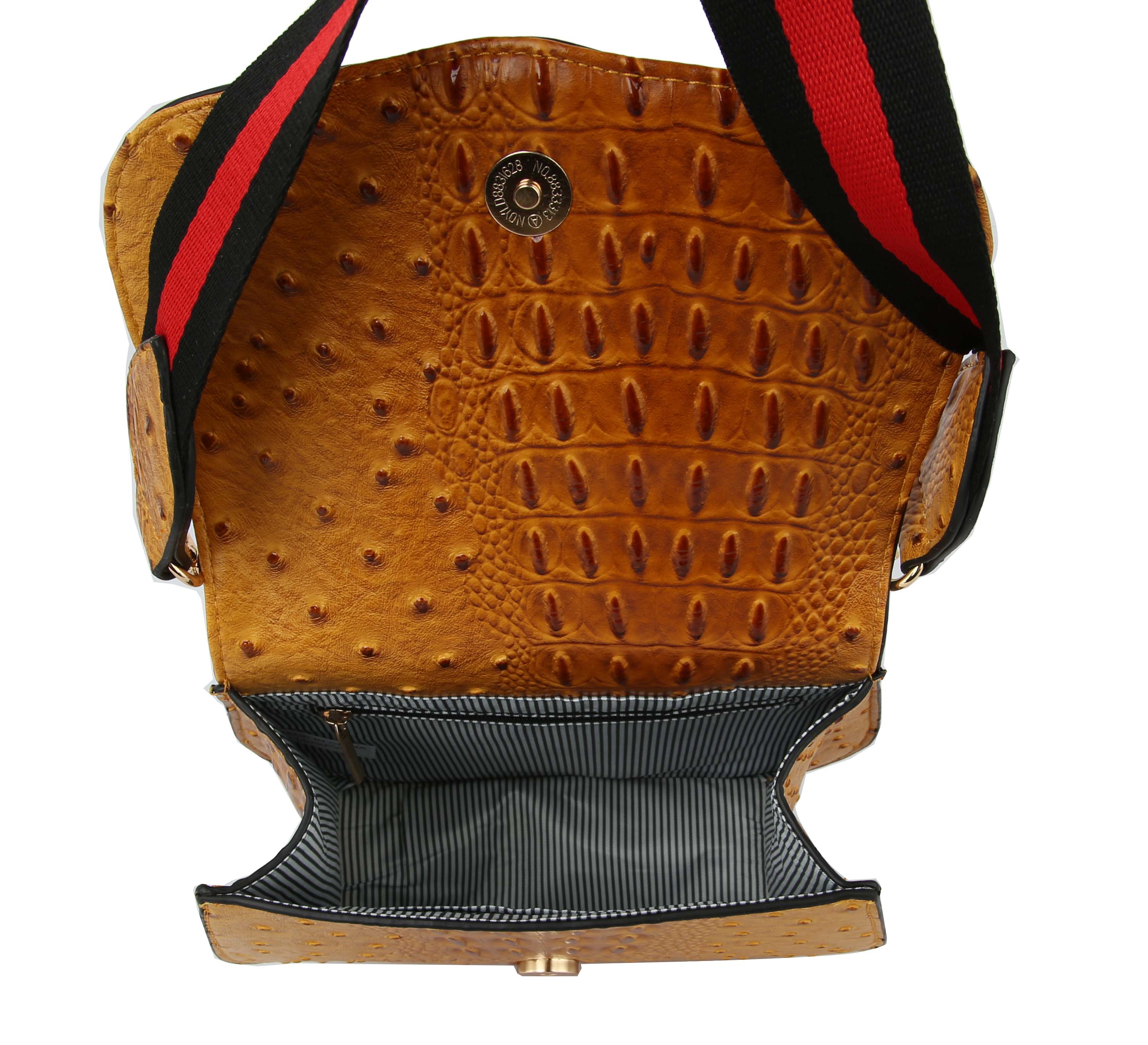 The most popular guitar straps design, it’s durable and easy to clean, Simply wipe with a soft cloth and water to keep this bag looking as good as new, Unique crocs elements, gold tone metal clip attachments. Size: 8.25x3x6.75  |