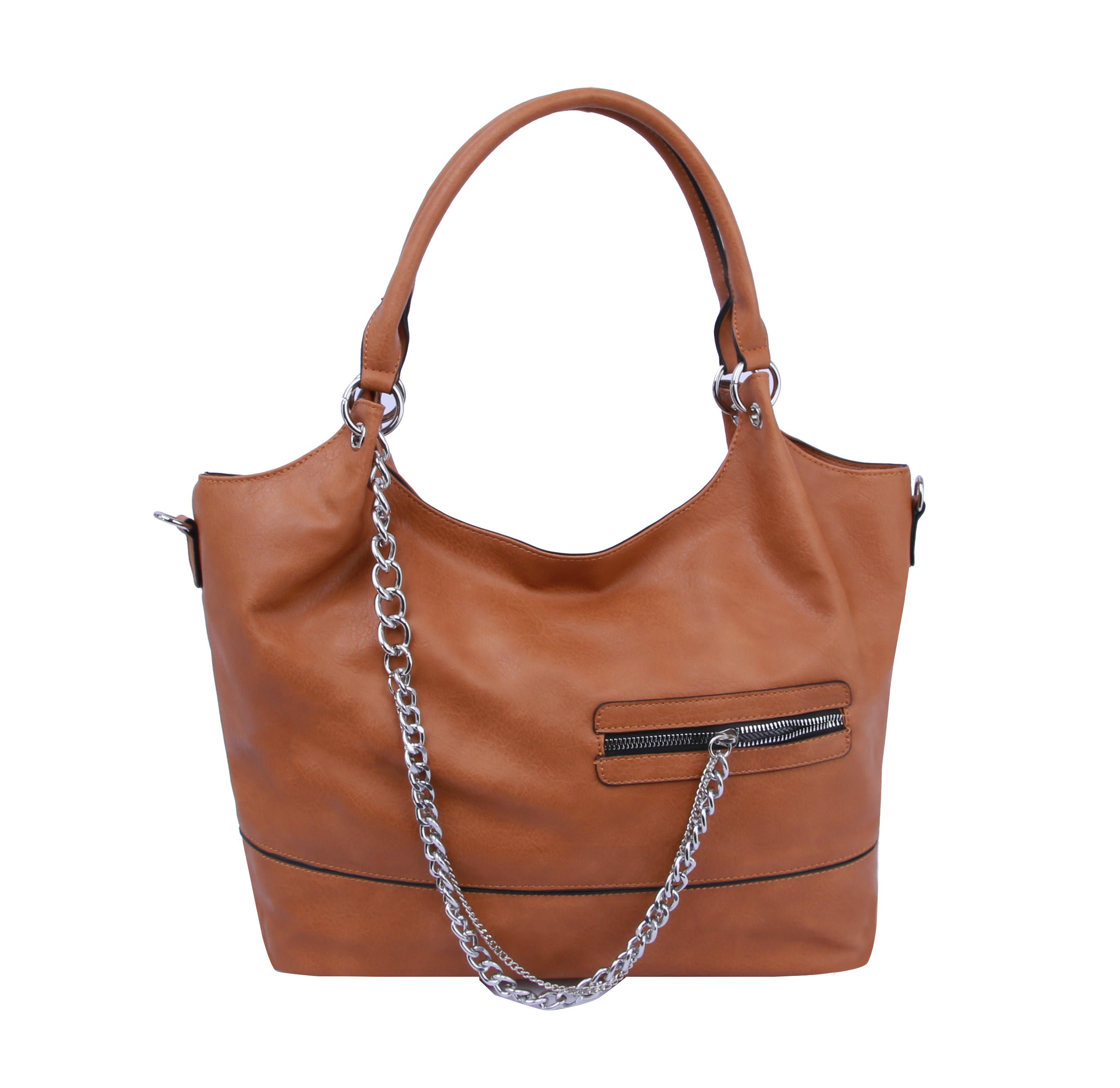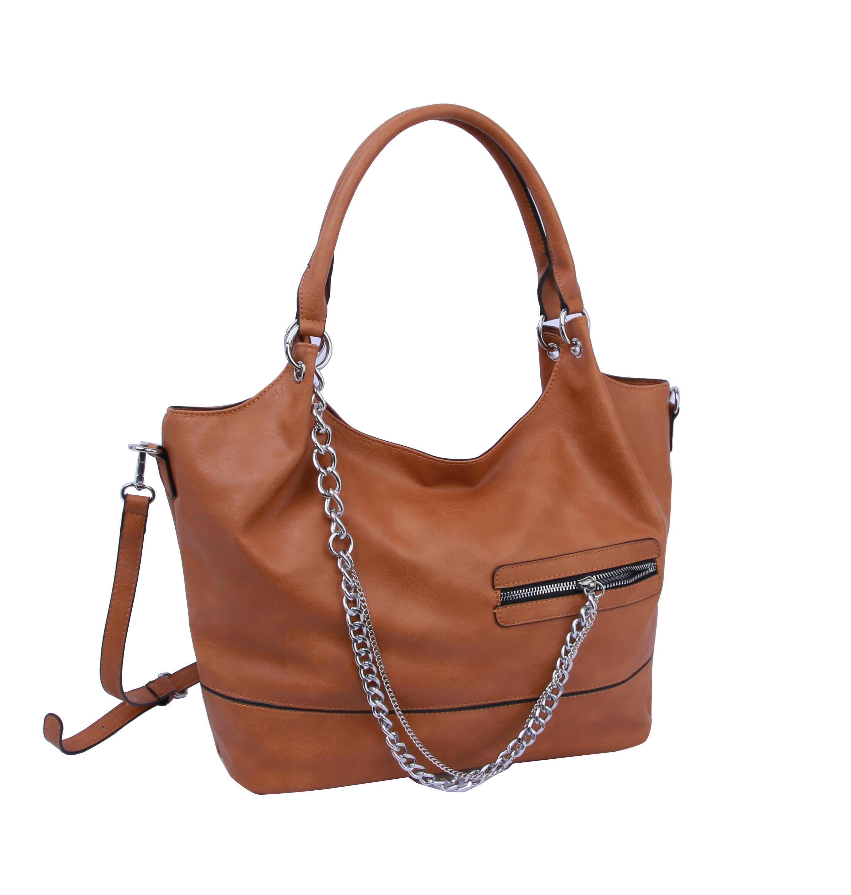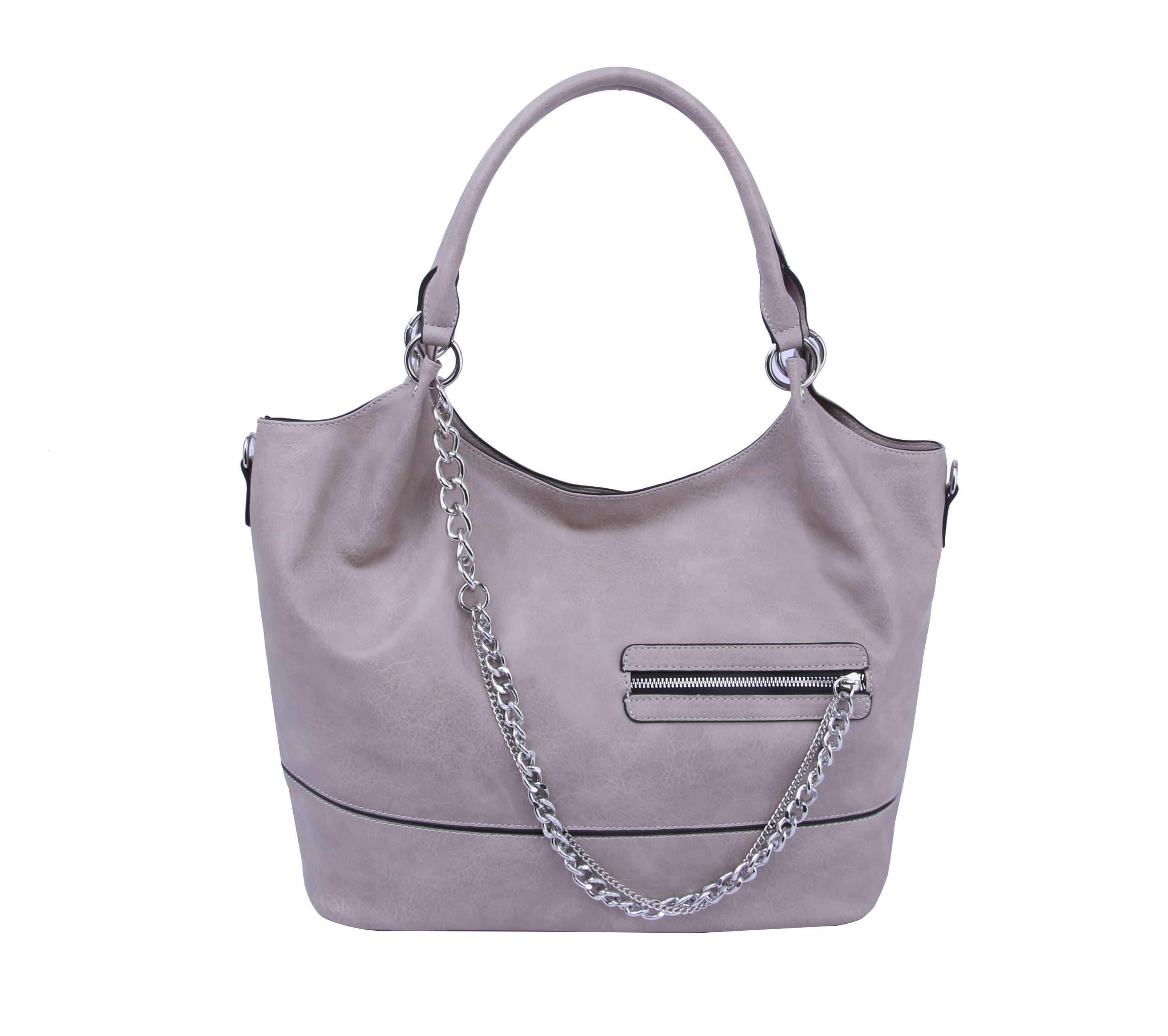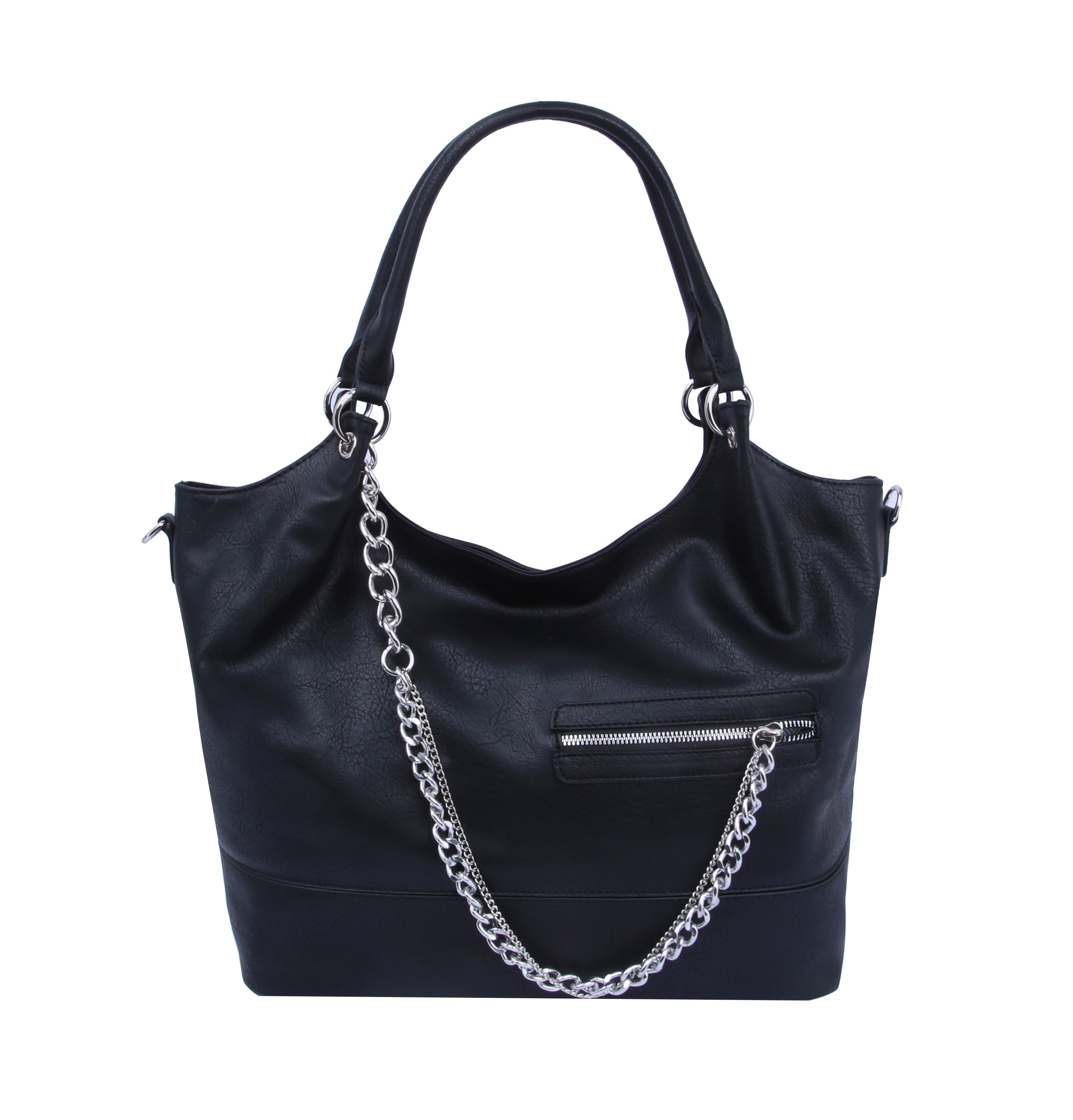 MULTI POCKET , SILVER TONE CHAIN, TOP ZIP CLOSURE, , 19.6 X 5.25 X 11