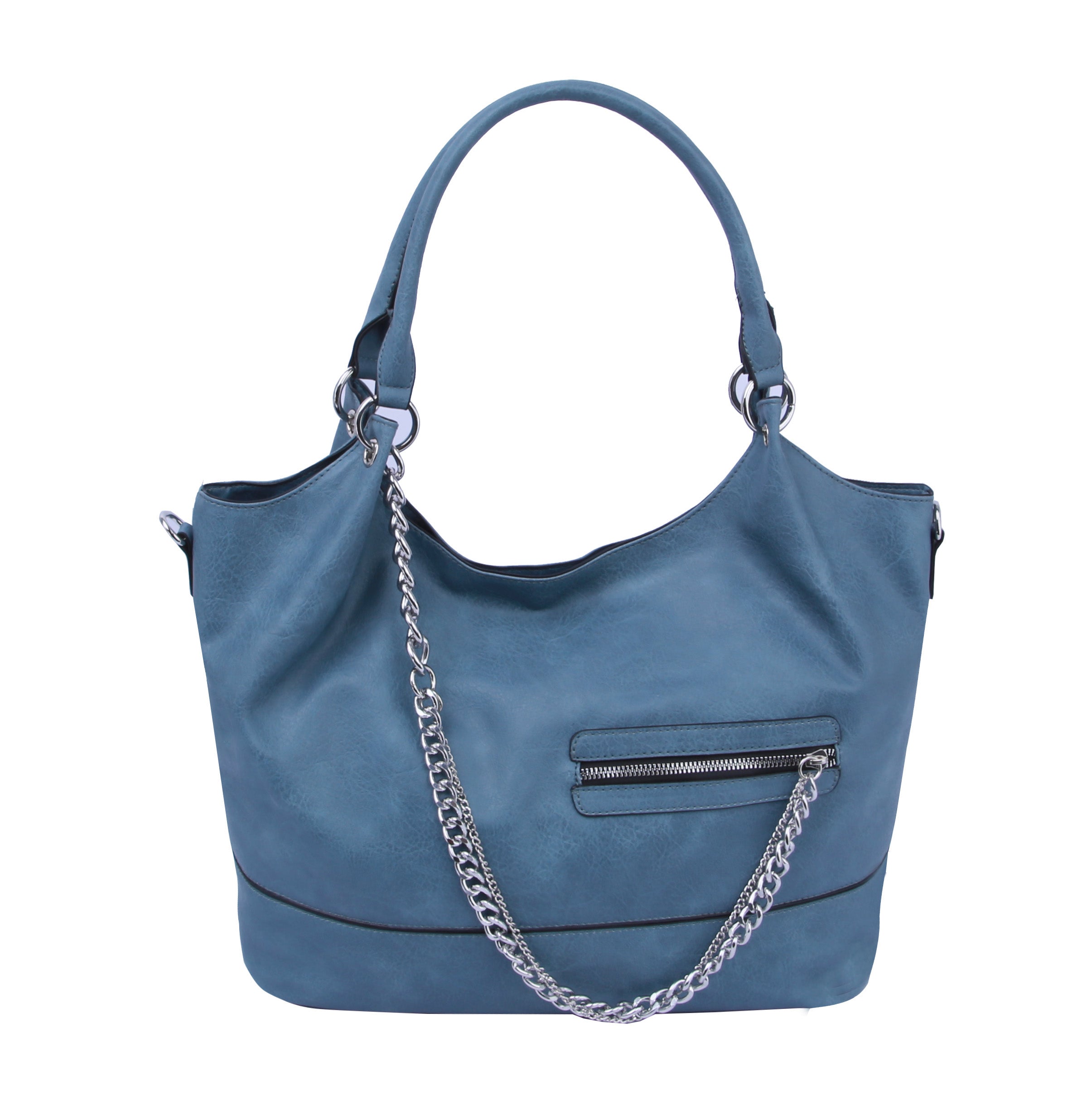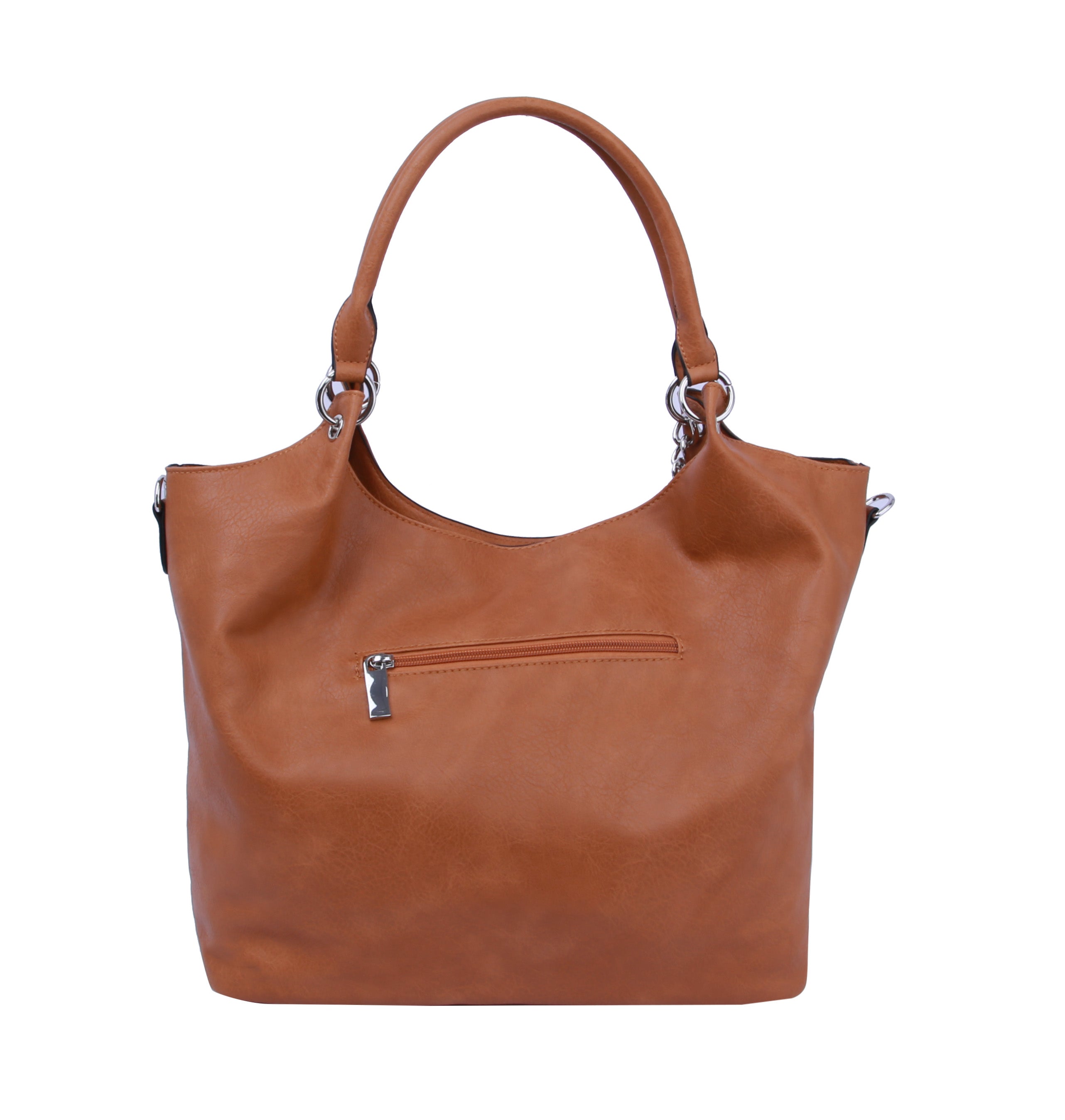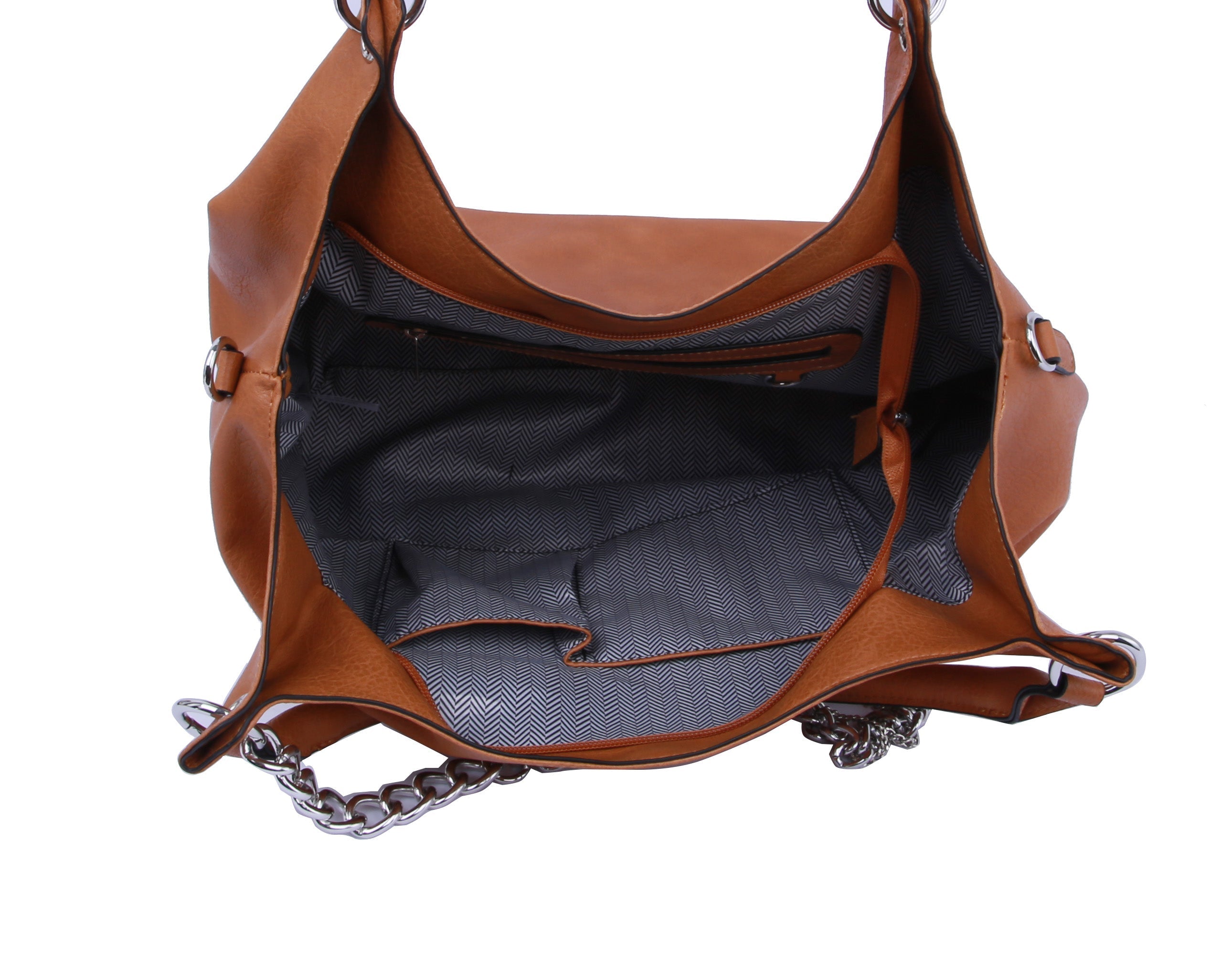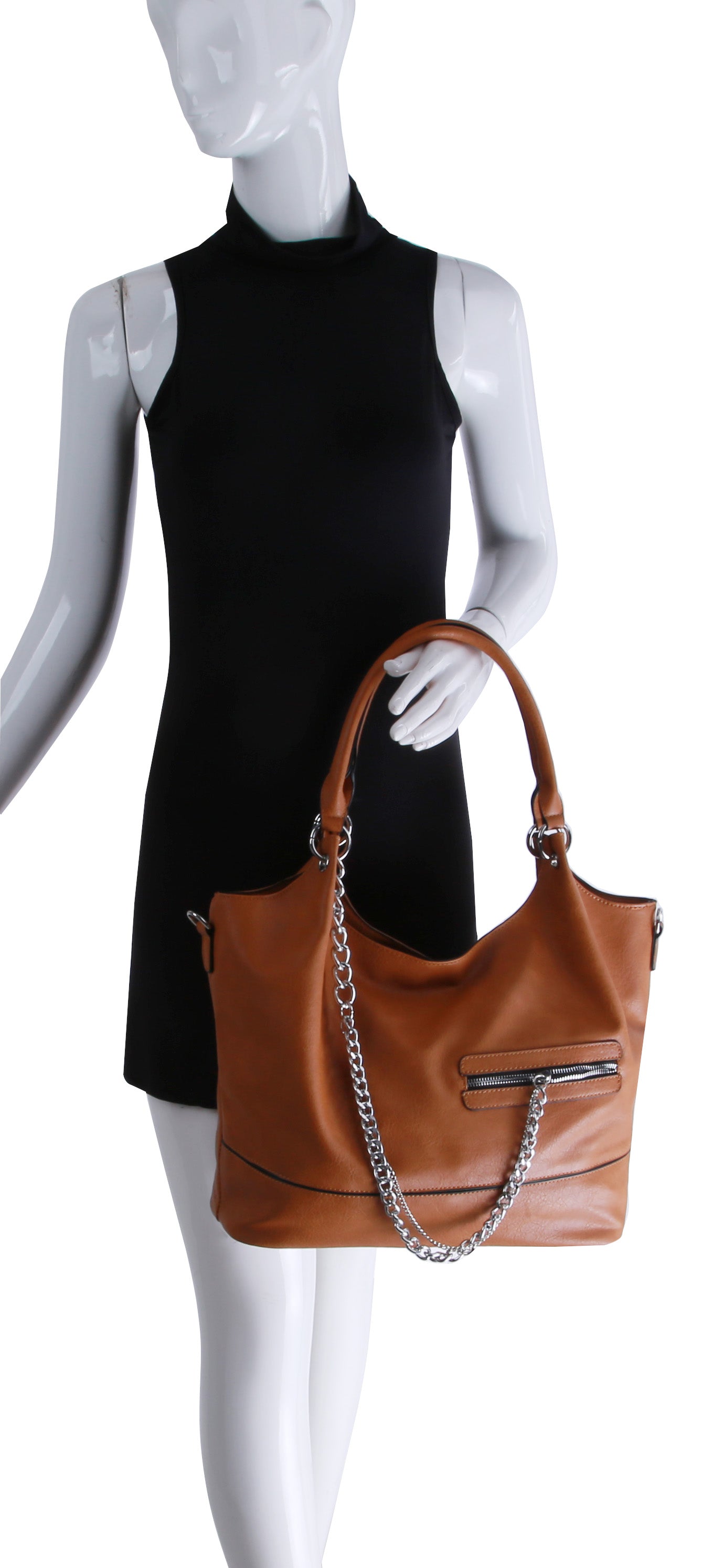 MULTI POCKET , SILVER TONE CHAIN, TOP ZIP CLOSURE, , 19.6 X 5.25 X 11