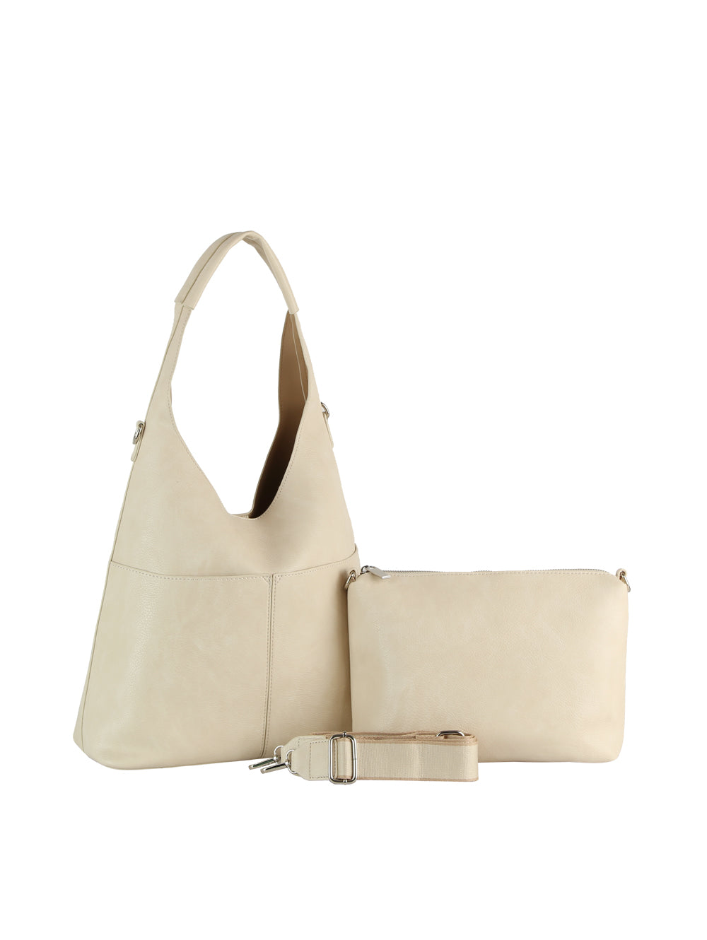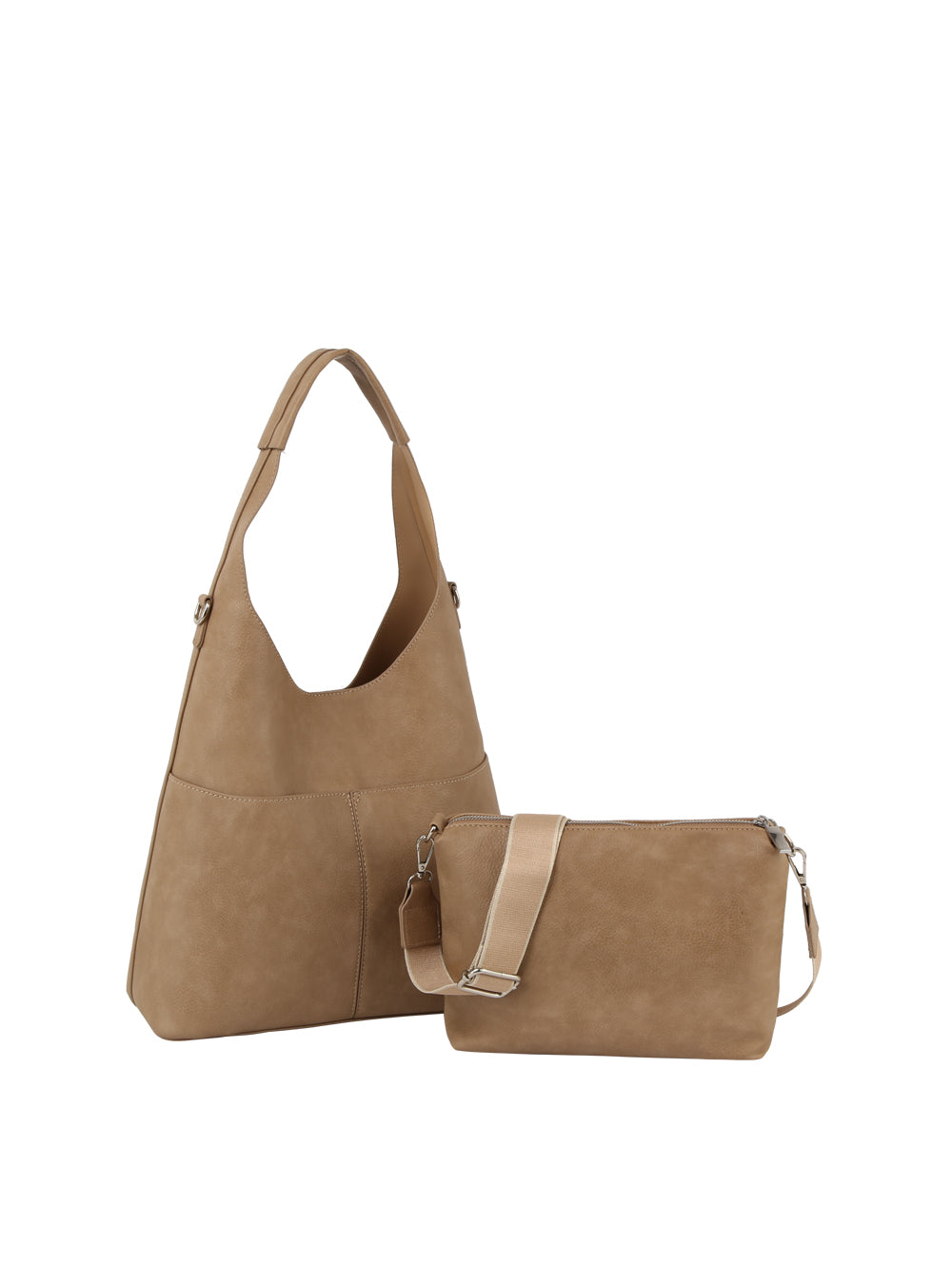 Design: A sleek and versatile dual-piece tote, crafted with premium vegan leather, combining a chic hobo silhouette...